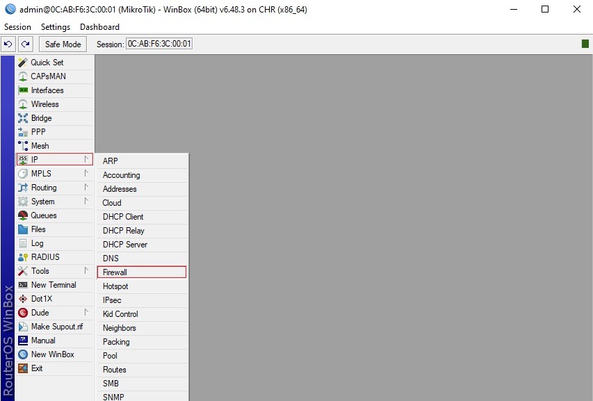 در این سناریو پیش از انجام تنظیمات مربوط به NAT می بایست ابتدا به Ether1 میکروتیک آدرس 192.168.1.1/24 را اعمال نماییم و یک DHCP Server در اینترفیس Ether1 راه اندازی نماییم تا دستگاه ها در شبکه داخلی آدرس IP دریافت نمایند. همچنین در Ether2 می بایست آدرس Public IP خود را وارد کنیم. این تنظیمات را ما قبلا انجام داده ایم و در این مقاله صرفا تنظیمات مربوط به NAT را قرار می دهیم. جهت اعمال تنظیمات NAT می بایست نرم افزار Winbox را اجرا نماییم و از منوی IP زیر منوی Firewall را انتخاب می کنیم.